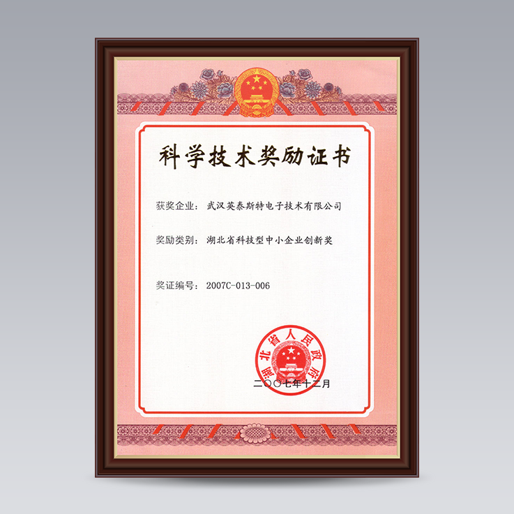2007年度湖北省科技型中小企业创新奖--湖北省人民政府