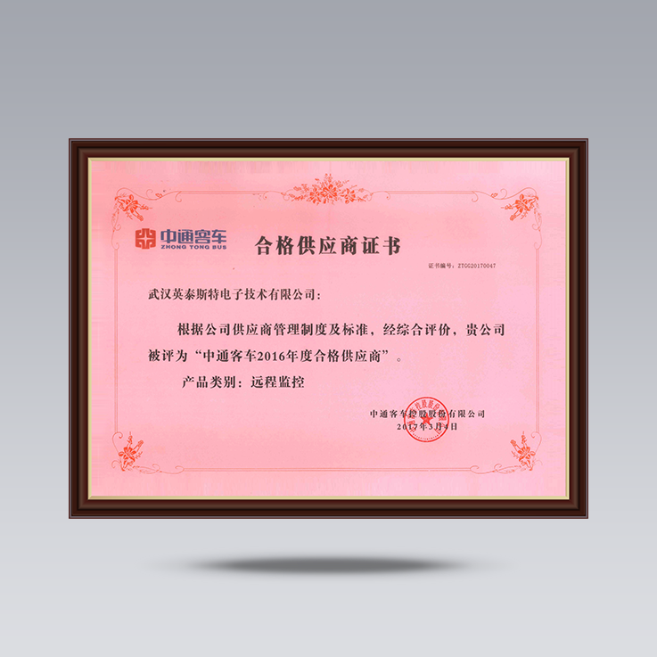 中通客车2016年度合格供应商--中通客车控股股份有限公司